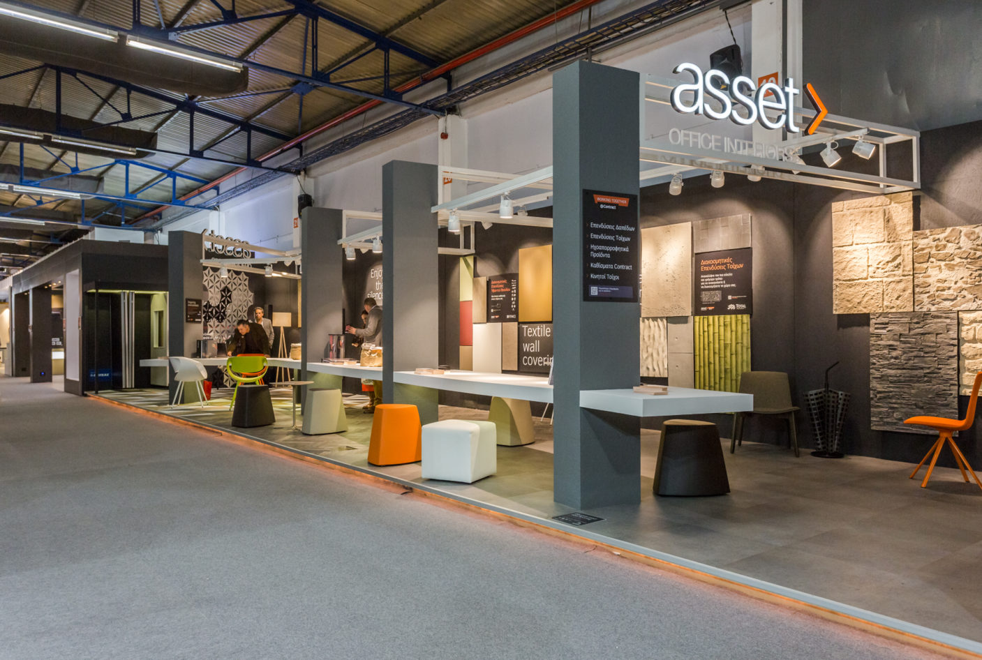 Architects, designers, interior designers and hoteliers who visited our stand, had the opportunity to see our innovative products and materials for the hospitality and contract market. Complete collecions of LVT and woven vinyl floor coverings, decorative and sound absorbing wall coverings, contract chairs and movable soundproofing walls, attracted the interest of visitors, who were informed about the applications of the products, that can turn ordinary spaces into unique and modern environments
