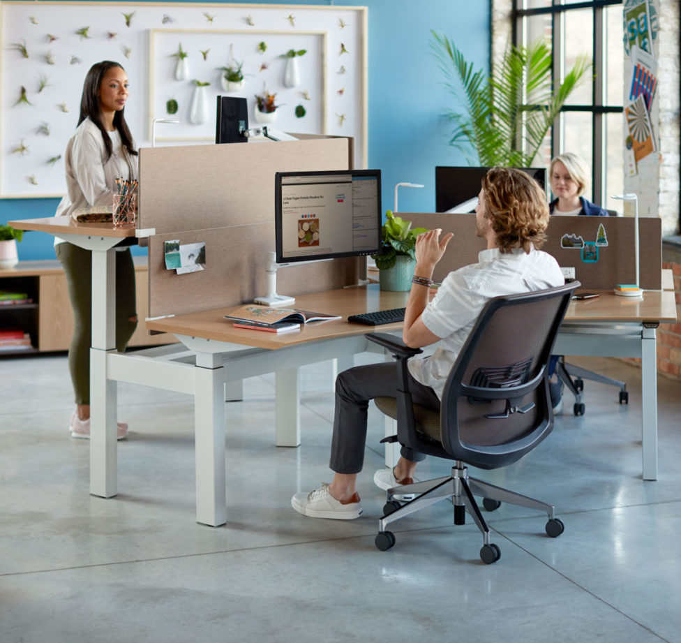 Τα ρυθμιζόμενα καθ’ ύψος γραφεία Sit & Stand επιλύουν σε μεγάλο βαθμό το πρόβλημα της πολύωρης καθιστικής εργασίας και προφυλάσσουν από τις ανεπιθύμητες συνέπειές της. Επιτρέπουν την εναλλαγή μεταξύ όρθιας και καθιστής θέσης καθ’ όλη την διάρκεια της ημέρας, βελτιώνοντας την κυκλοφορία του αίματος και την στάση του σώματος αποφεύγοντας έτσι δυνητικούς μυοσκελετικούς τραυματισμούς. Η ρύθμιση του ύψους πραγματοποιείται από τον κάθε χρήστη ατομικά, προσαρμόζοντας το στο ιδανικό, για αυτόν, ύψος έτσι ώστε να του προσφέρει την άνεση την οποία επιθυμεί.