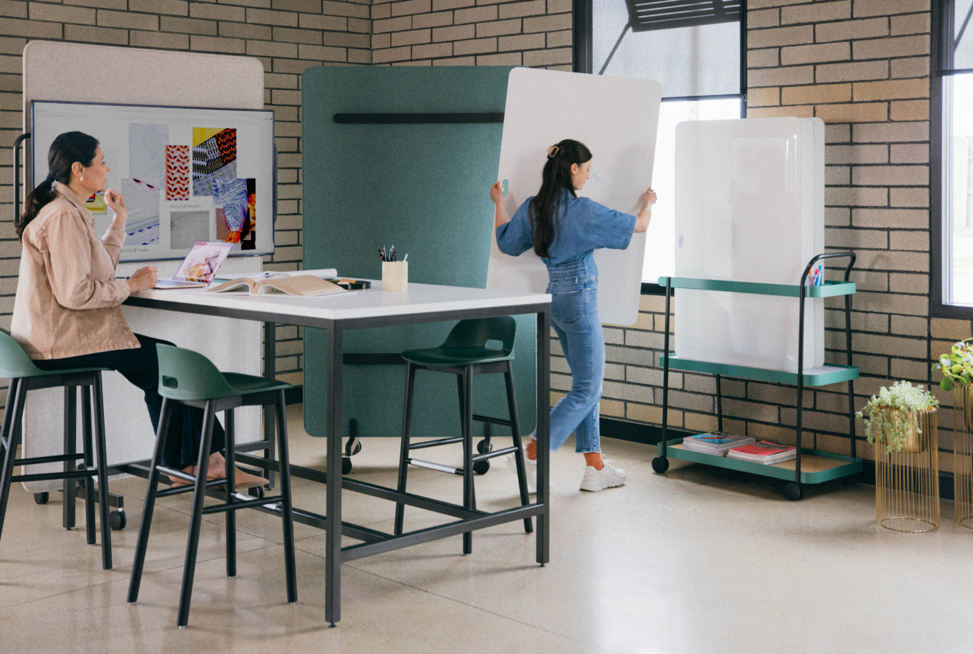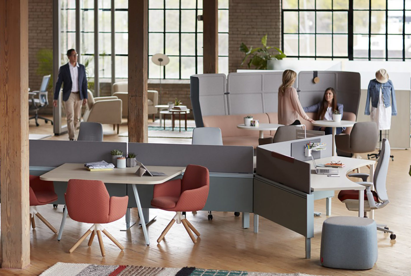 Οι σύγχρονοι εργασιακοί χώροι σχεδιάζονται έτσι ώστε να υποστηρίζουν τόσο την ατομική όσο και την ομαδική εργασία, με λειτουργικά και εργονομικά έπιπλα που προσφέρουν την απαραίτητη υποστήριξη σε κάθε θέση ή κίνηση του εργαζόμενου. Χώροι που προάγουν τη συνεργασία και επικοινωνία μεταξύ των ανθρώπων, σχεδιασμένοι έξω από τα κλασσικά και τυπικά πρότυπα των αιθουσών συνεδριάσεων, βρίσκουν όλο και μεγαλύτερη εφαρμογή. Ενισχύουν την ανταλλαγή απόψεων και ιδεών μεταξύ των εργαζομένων και συμβάλλουν στην ομαδικότητα και τη δημιουργία κοινωνικών δεσμών μεταξύ τους.