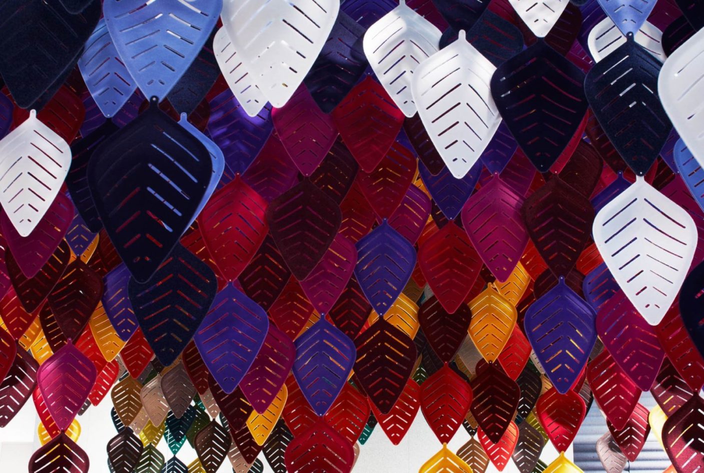 The new sound-absorbent Airleaf is made out of moulded felt and is designed by Stefan Borselius with the aim to let nature in. The leaf-shaped modules are made to gently separate and to build a pleasant soundscape and are available in 30 different colors.
