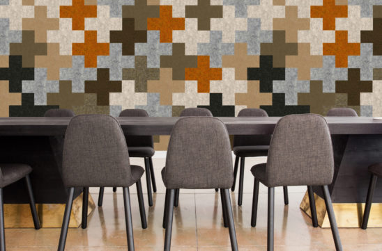 Felt Shapes are geometric panels with soundabsorbing properties which offer the ability of creation architectonic patterns while enhance the acoustics. The panels are made of Felt which absorbs the sound and balance the reverberation while the installation is quick and easy thanks to their self-adhesive double tape. Available in eight shapes with variety of colours to fulfil any décor needs.