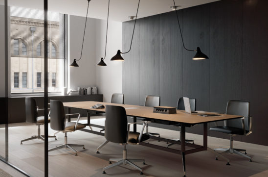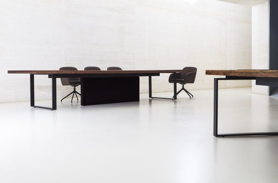It offers the best features of a table: robust worktops of natural materials, solid structure of metal, painted in a variety of colors, with a clean light design that creates great personality. One of the main features of the Usoa program is its ability to cover large lengths, creating robust tables up to 5.4 meters long and 1.6 meters wide with only two columns.