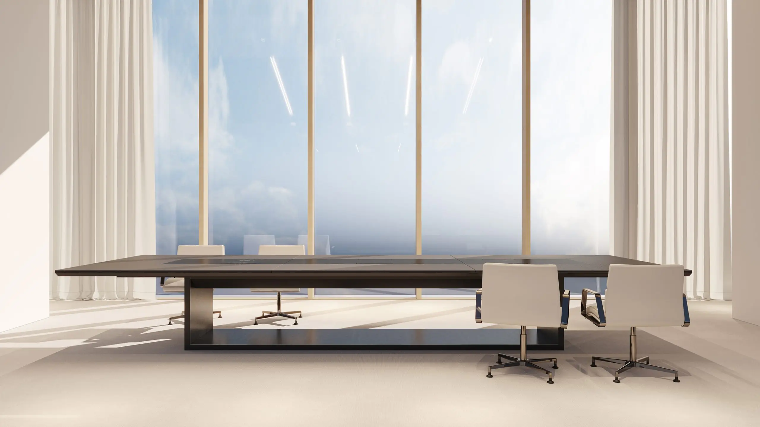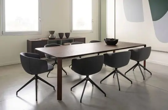 The Zen conference table is designed to stand out. With its open rectangular base and clean, defined lines, it conveys a sense of prestige and stability, adding an executive touch to any professional space. Perfectly suited for large meetings, it offers comfort and ergonomic efficiency, while the optional top-access unit discreetly integrates technology into the workspace. Crafted from high-quality, durable materials, Zen ensures long-term reliability and performance. It’s the ideal choice for work environments that demand both functionality and a commanding presence.