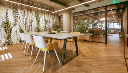 Partition systems, floor coverings, and wall coverings have been carefully selected to beautifully complete the workplace’s style and create balanced environment.