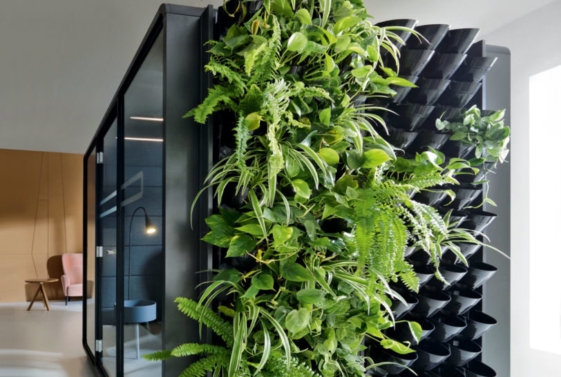 Biophilia is introduced through the integration of natural materials, patterns and plants and is bringing a design element critical to mental wellbeing in the workplace. If space for potted plants is limited, an option is the creation of “living walls” or “vertical gardens,” which feature an array of plants planted vertically against a wall or within another structure. Vertical green walls can be built on wheels so they may be moved around the office.