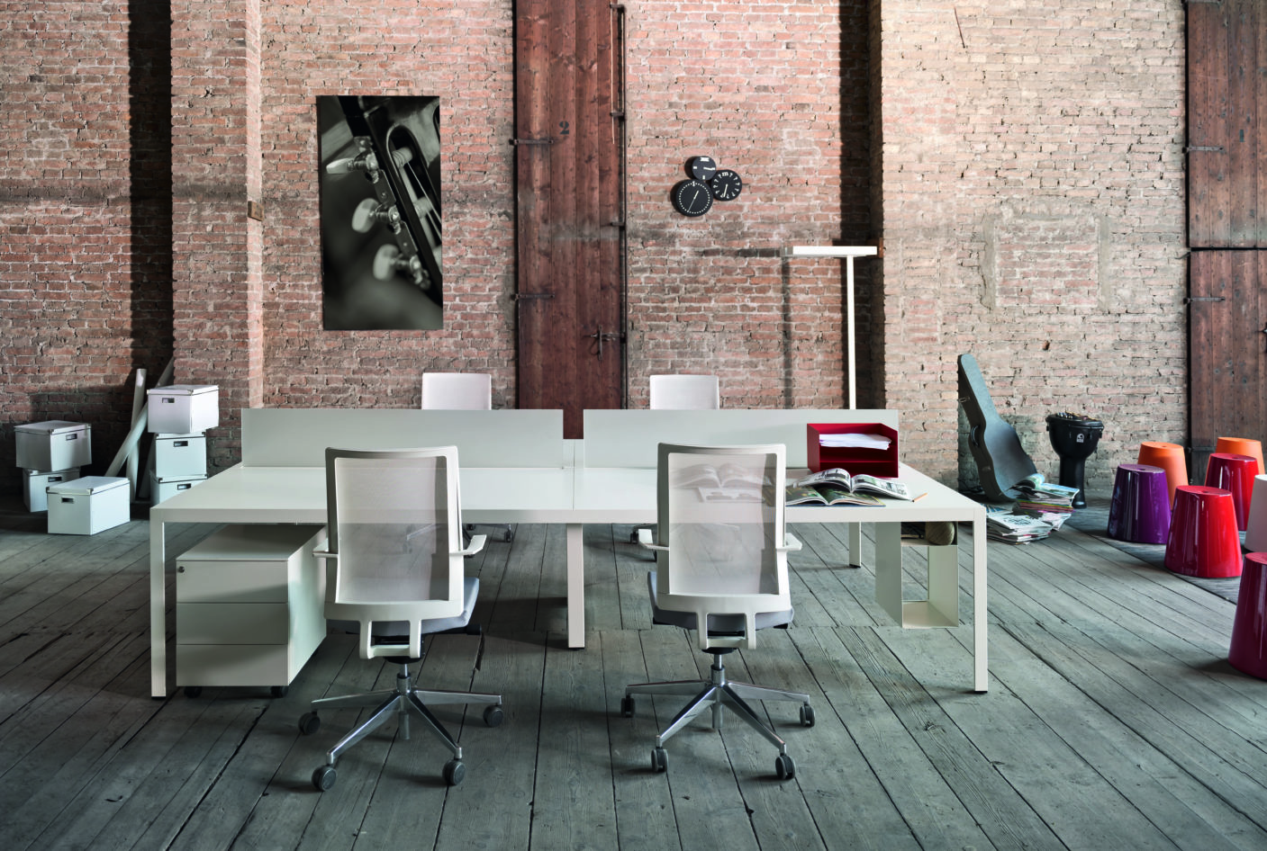 Μια σειρά που εισάγει μια νέα άποψη αισθητικής, εξυπηρετώντας άρτια την ανάγκη ενός σύγχρονου επαγγελματικού χώρου. Οι επιφάνειες εργασίας μπορούν να εξοπλιστούν με διαχωριστικά screen panel και να συμπληρωθούν με συρταριέρες και ερμάρια.