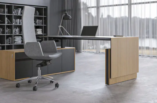 Το διευθυντικό γραφείο Bat Executive χαρακτηρίζεται από καθαρές σχεδιαστικές γραμμές και δίνει έμφαση στην λεπτομέρεια. Ιδιαίτερη αισθητική που συνδυάζει τη γεωμετρία με το αφαιρετικό design. Η αρμονική συνύπαρξη των οριζόντιων και κάθετων γραμμών εξασφαλίζει την επιθυμητή σταθερότητα και λειτουργικότητα.