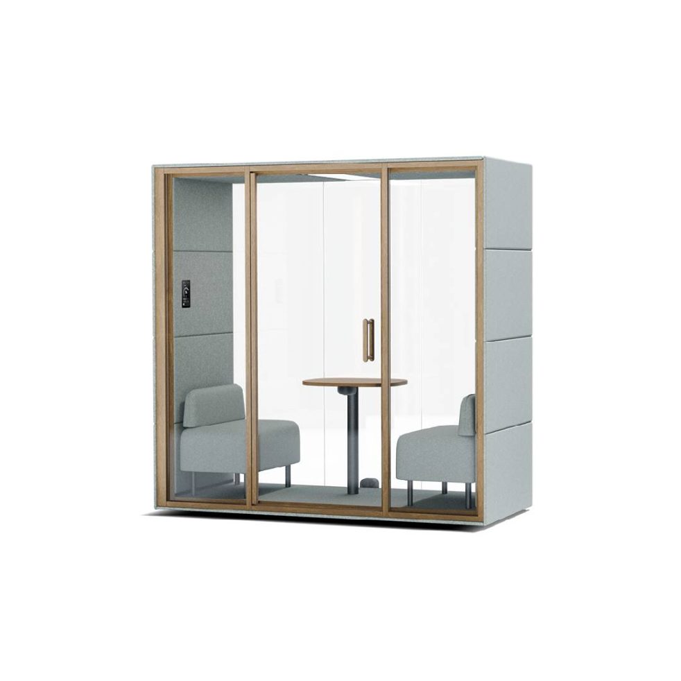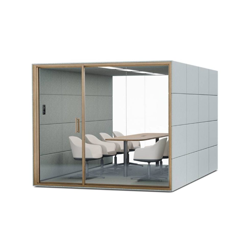 Προτεραιότητα των επιχειρήσεων είναι η προώθηση της συνεργασίας και της παραγωγικότητας, τα meeting booths αποτελούν ιδανική προσθήκη και αναπόσπαστη συνιστώσα στους συγχρόνους χώρους εργασίας. Παρέχουν μια σειρά σημαντικών πλεονεκτημάτων, όπως τη διευκόλυνση της συνεργασίας και των ομαδικών ή ιδιωτικών συναντήσεων, κάνοντας αποτελεσματικότερη την επικοινωνία μεταξύ των εργαζομένων χωρίς διακοπές από εξωτερικούς παράγοντες. Η εύκολη μετακίνηση τους ανάλογα με τις ανάγκες του χώρου τα καθιστά ευέλικτα και λειτουργικά. Eίναι πλήρως εξοπλισμένα με όλες με όλο τον απαραίτητο ηλεκτρολογικό και δικτυακό εξοπλισμό για την πραγματοποίηση βιντεοκλήσεων & παρουσιάσεων.