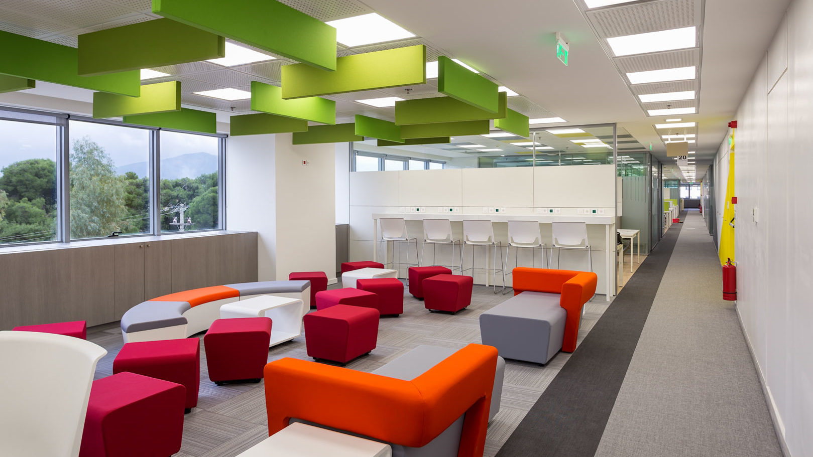 Η τοποθέτηση ηχοαπορροφητικών προϊόντων στους χώρους είναι μελετημένη να διασφαλίζει την απαραίτητη ακουστική άνεση, ενώ τα επιλεγμένα έπιπλα γραφείου, καθίσματα εργασίας και συμβουλίου, καθώς και τα καθίσματα πολλαπλών χρήσεων, προσφέρουν εργονομία στο χώρο και μια ευχάριστη αισθητική.