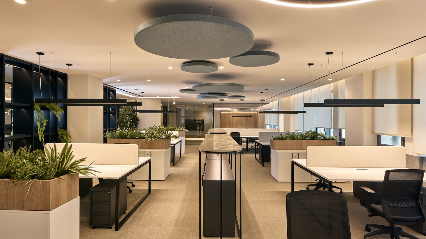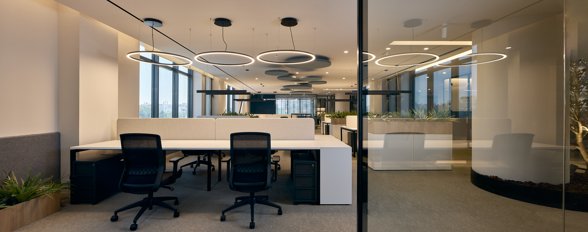 Δίνοντας έμφαση στη λεπτομέρεια, η αρχιτεκτονική ομάδα White Arch δημιούργησε ένα λειτουργικό εργασιακό περιβάλλον, χρησιμοποιώντας καθίσματα και τραπέζια συνεδριάσεων, έπιπλα lounge και ηχοαπορροφητικά προϊόντα. Επιπλέoν, επιλέχθηκαν γραφεία και καθίσματα εργασίας συμβάλλοντας στην εργονομία του χώρου.
