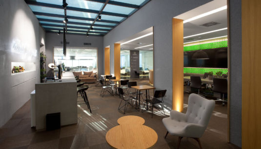 Eπενδύει σε ένα γραφειακό χώρο σχεδιασμένο πέρα από το στερεότυπο της τυπικής θέσης εργασίας. Όπως οι αρχιτέκτονες του έργου Γιώργος Παπαδόπουλος, Φανή Παρθενίου – PARTHENIOS architects & associates εξηγούν, μελέτησαν και σχεδίασαν το χώρο με στόχο όχι απλά μόνο την τυπική κάλυψη των ελαχίστων αναγκών των εργαζομένων, αλλά την προσφορά ενός δημιουργικού μικρόκοσμου, μέσα στον οποίο ο εργαζόμενος νιώθει μέρος μιας ζωντανής ομάδας, έχει όρεξη να συνεισφέρει, δεν ανυπομονεί να δραπετεύσει από τον εργασιακό του χώρο και οι νέες τεχνολογίες συμβάλουν δραστικά στην εμπέδωση ενός ομαδικού κλίματος συν-εργασίας, σε συνδυασμό με την σμίλευση εταιρικής ταυτότητας.