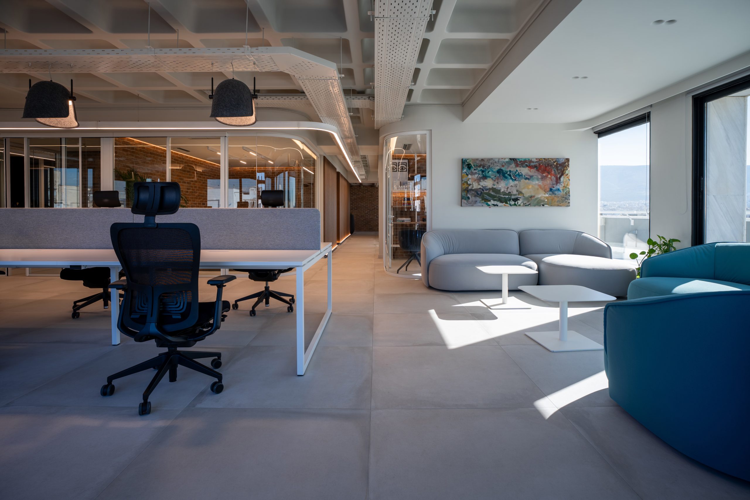 Με σκοπό την δημιουργία ενός συγχρόνου εργασιακού χώρου στον οποίο προάγεται στο έπακρο η παραγωγικότητα και η συνεργασία. Καμπύλα γυάλινα διαχωριστικά συστήματα τοποθετήθηκαν, συμβάλλοντας στην δημιουργία ενός φωτεινού χώρου και δημιουργώντας ένα λειτουργικό περιβάλλον. Τα επιλεγμένα γραφεία εργασίας, τα καθίσματα, τα Booth και τα τραπέζια συνεδριάσεων, συνέβαλλαν στην συνολική εργονομία του χώρου, ενώ τα ηχοαπορροφητικά προϊόντα υποστήριξαν τους ανοικτούς χώρους, προσδίδοντας ακουστική άνεση.