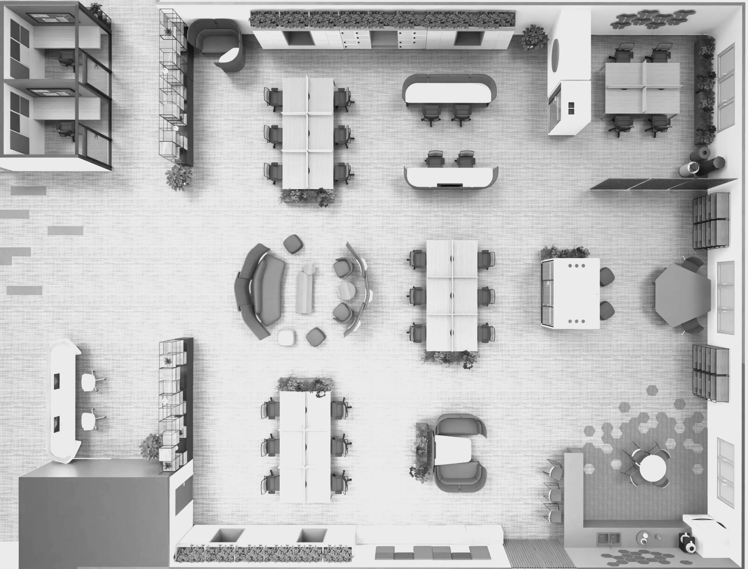 Φυτά στους εσωτερικούς χώρους: Ενσωματώστε τον βιοφιλικό σχεδιασμό προσθέτοντας φυσικά στοιχεία που μειώνουν το άγχος και αυξάνουν την ευημερία των εργαζομένων.